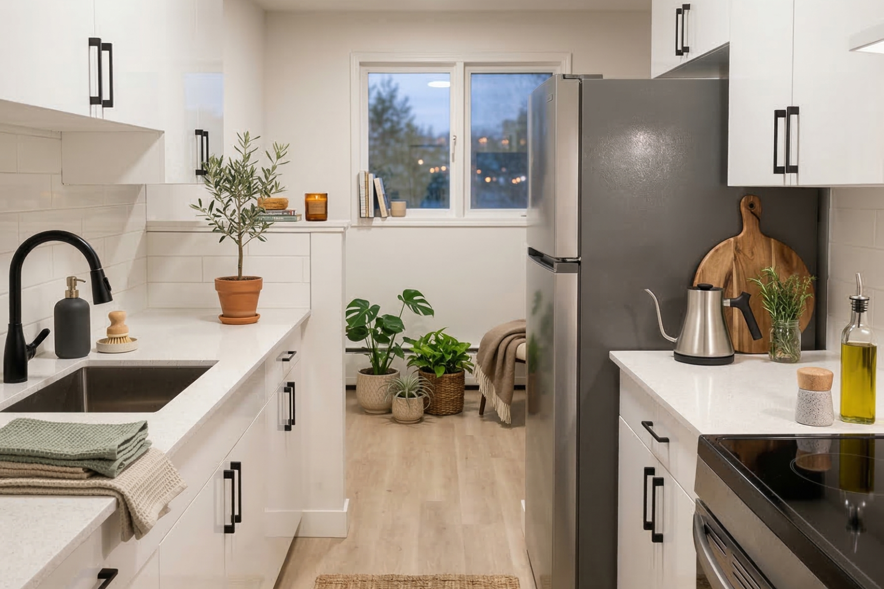 - Beautifully renovated suites featuring vinyl plank flooring, quartz countertops, modern cabinetry, LED lighting, and stainless-steel appliances
