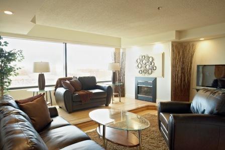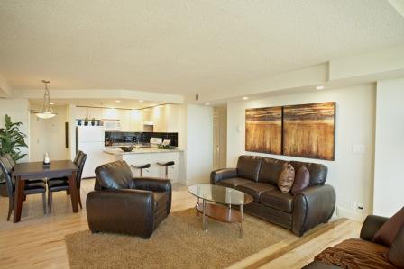 - Spacious 1–2 bedroom rental suites with modern interiors and open-concept layouts.